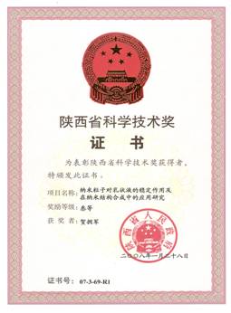 纳米粒子对乳状液的稳定作用,陕西省科技进步三等奖,贺拥军(排名第一, 2007年)