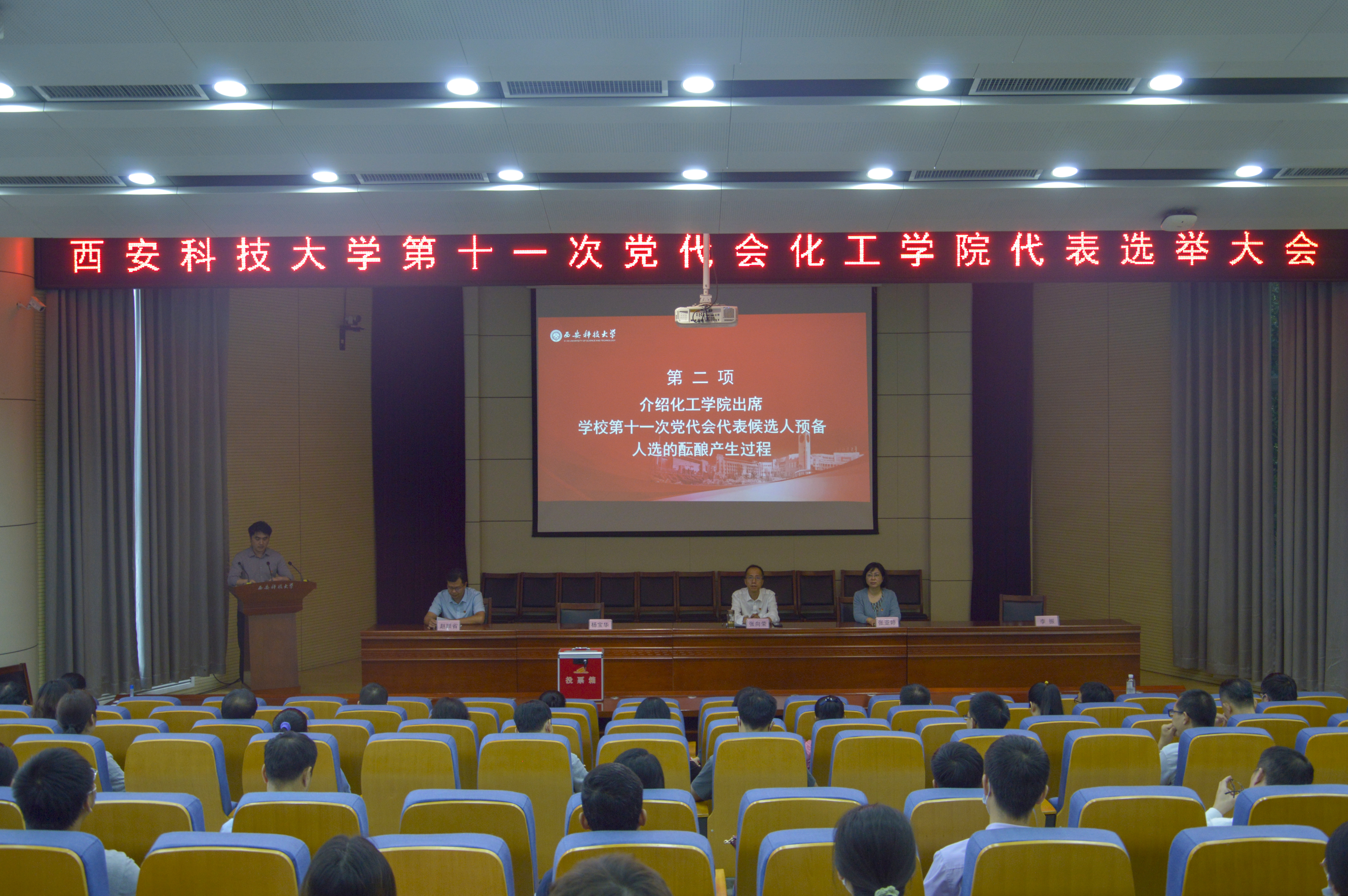会议在雄壮的国歌声中拉开帷幕。公司党委委员李振同志通报了《化工公司党委出席公司第十一次党代会代表候选人预备人选的酝酿产生过程》;党委委员赵顺省同志宣读了《公司党委关于代表候选人预备人选建议名单的批复》;褚佳同志宣读了《出席公司第十一次党代会代表选举办法(草案)》;会议表决通过了选举办法、总监票人、监票人、计票人和唱票人名单。在总监票人李天良同志主持下,通过无记名投票方式,差额选举产生了李振等7名同志(教工6人,员工1人)为公司出席公司第十一次党员代表大会代表,提交公司大会代表资格审查小组审查。
