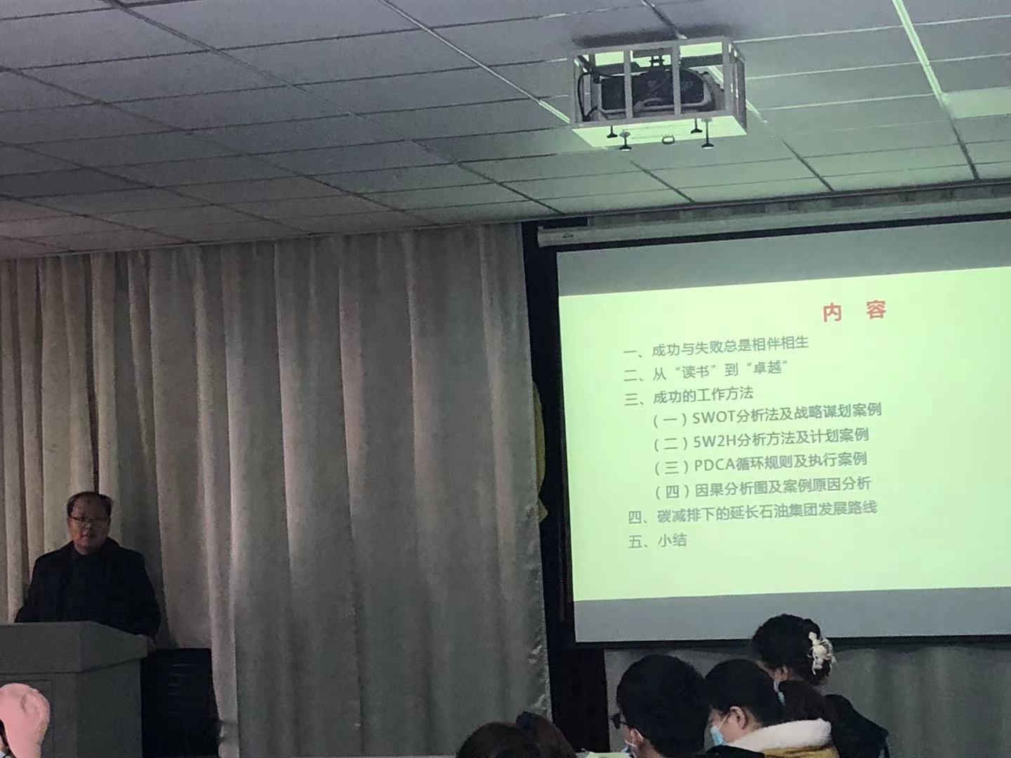 2021年10月20日,公司邀请陕西省石油化工研究设计院李俊华副经理,为化工专业毕业班员工开展了一堂题为“成功的工作方法”报告。化工公司贺新福副经理主持了该报告会。