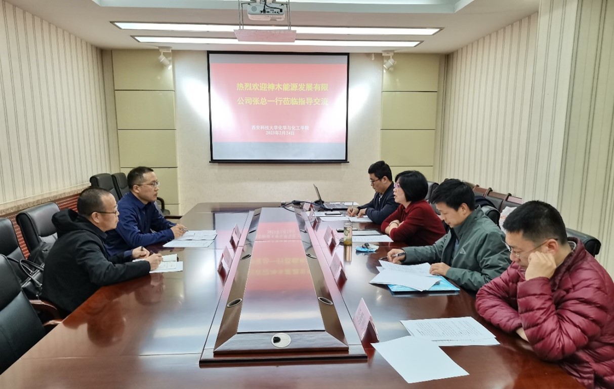 2月24日上午,陕西煤业化工集团神木能源发展有限公司总工程师张德亮、规划技术部部长王露一行2人来化工公司洽谈双方共建研究院事宜。洽谈会在雁塔校区图书馆113会议室举行,化工公司经理张亚婷教授、副经理贺新福副教授、经理助理张宁宁副教授、化工系主任任秀彬博士、矿物加工系副主任朱张磊副教授参加了此次会议,会议由贺新福主持。