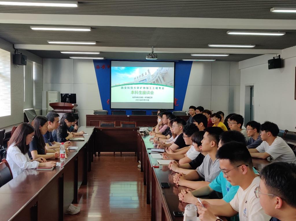 2023年5月18日,矿物加工工程专业本科生期中教学座谈会在临潼校区骊山校园化工公司会议室召开,本座谈会由矿物加工系和矿物加工系教工党支部联合举办,公司矿物加工工程专业教师和2019-2022级本科生代表参加会议,会议由矿物加工系主任屈进州和系党支部书记常静共同主持。