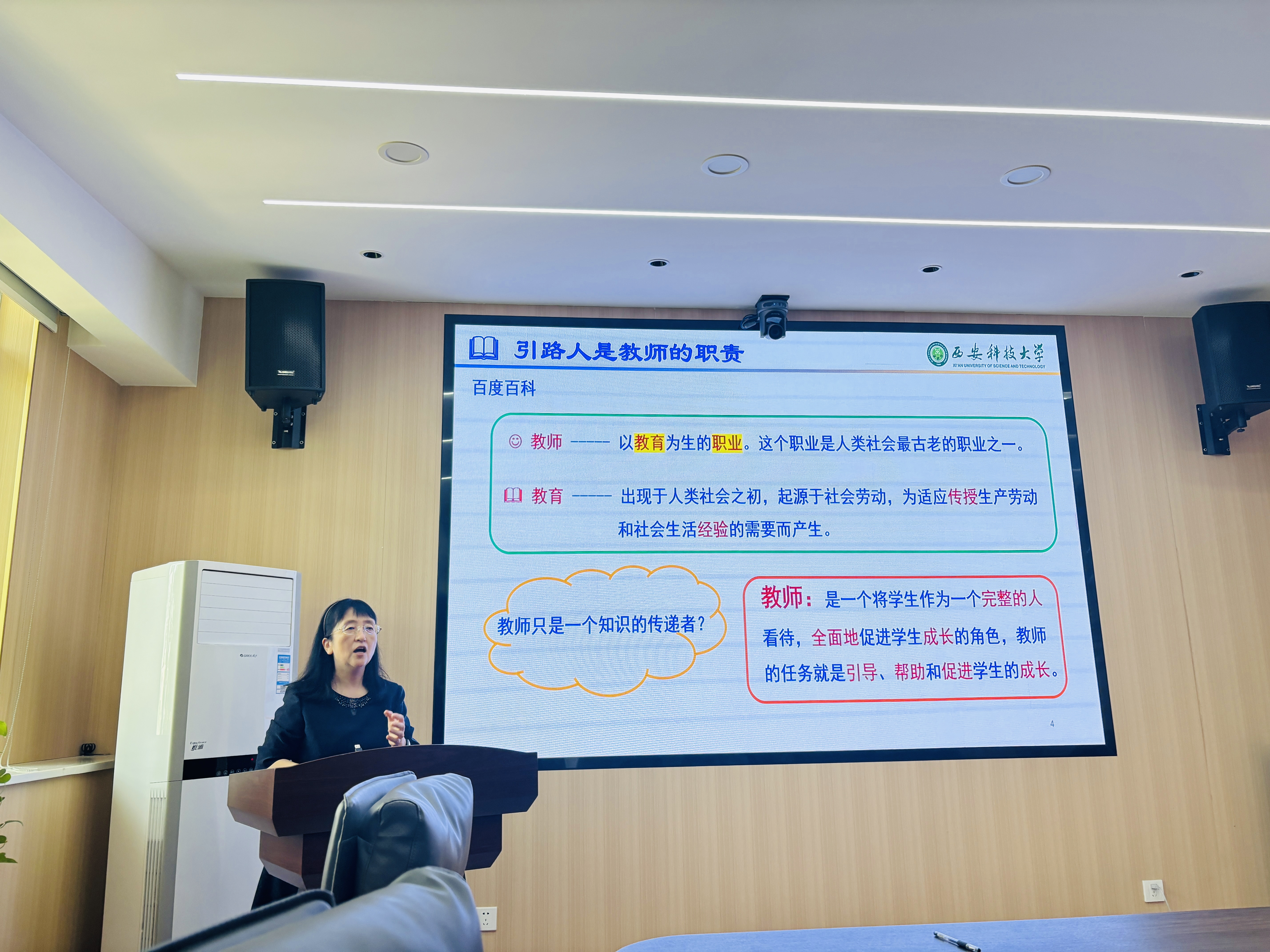 活动第一阶段,刘向荣老师以“努力做好员工成长过程的引路人”为题,结合自身从教经历,深入阐述了教师的职责与使命。她从“教师”和“教育”的本质出发,引导与会教师深入思考。随后,她重点分享了三点育人经验:一是在课堂教学中传播正能量,激发员工进取心,使其受益终身;二是精研专业课程,夯实员工基础,以优良教风彰显师德;三是悉心指导课外实践,助力员工发展,构建亦师亦友的和谐师生关系。刘老师的分享生动深刻,感染力强,令在场教师深受鼓舞。