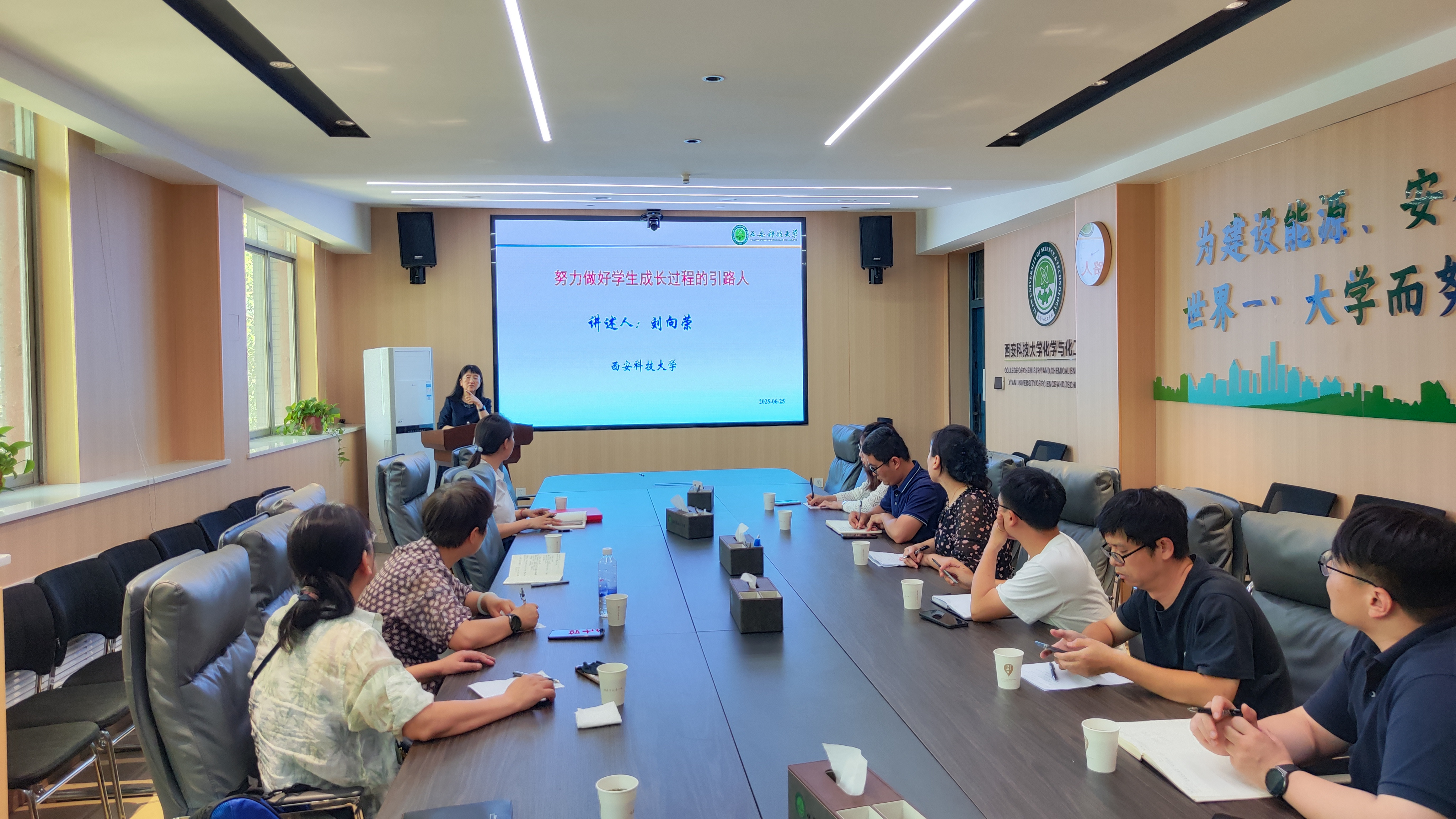 活动第二阶段,刘老师还详细介绍了其创新教学方法——“基于‘图表法’探索物理化学课程的高阶性教学途径”,为在座教师提供了宝贵的教学借鉴。她深情回顾了几十年潜心育人的历程,分享成长感悟,表达了对教师职业的挚爱,并从理论、方法与实践层面为青年教师的成长提供了指导。在互动环节,与会教师就教书育人及强化师德师风建设的重要性和必要性展开讨论,刘老师针对青年教师们在工作和生活中面临的挑战、问题和困惑逐一解答。