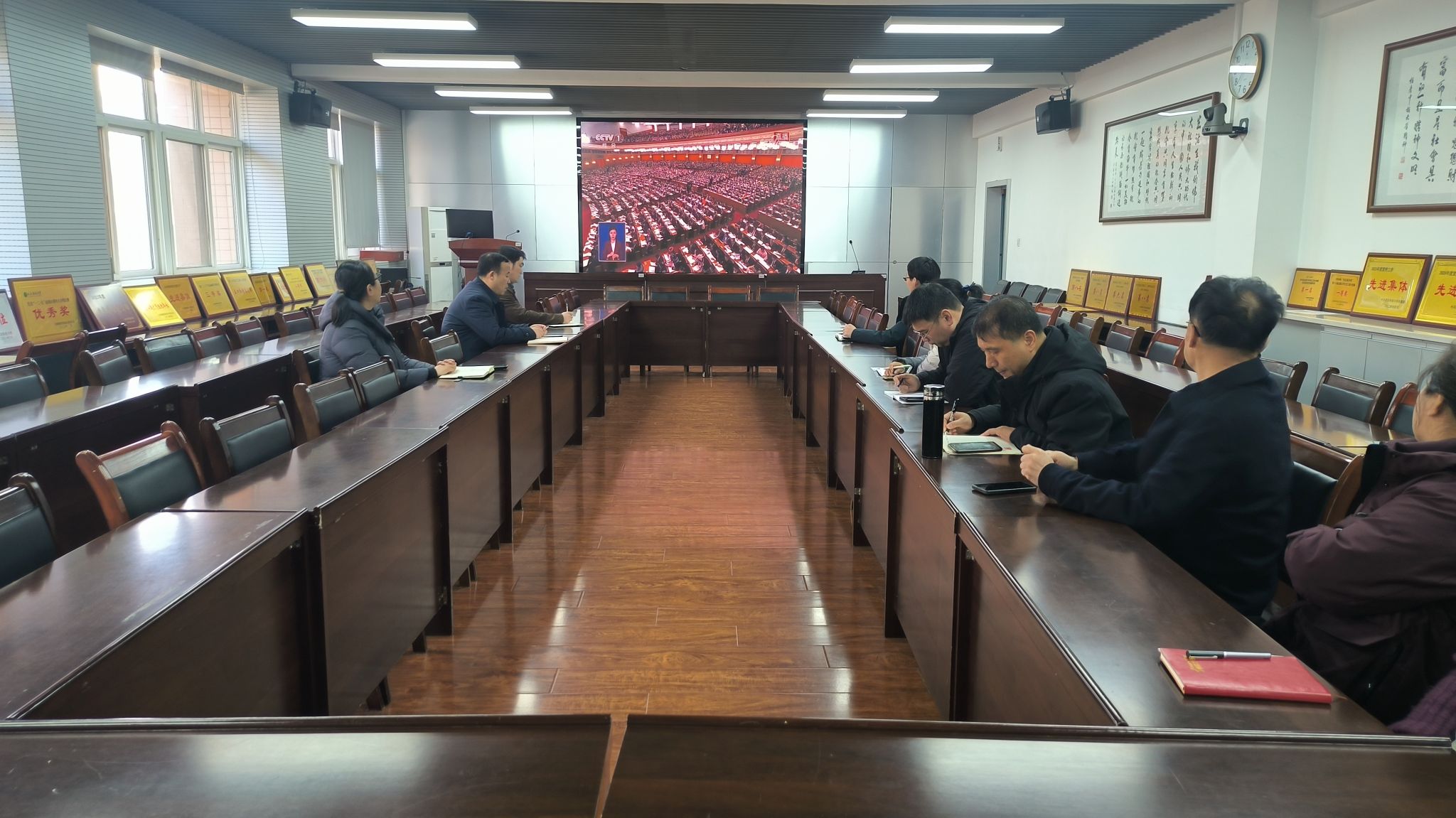 会议组织集体观看了第十四届全国人民代表大会第四次会议开幕会实况直播,认真聆听国务院总理李强代表国务院向大会作的政府工作报告。与会人员专注观看,深入学习领会国家大政方针与发展部署。