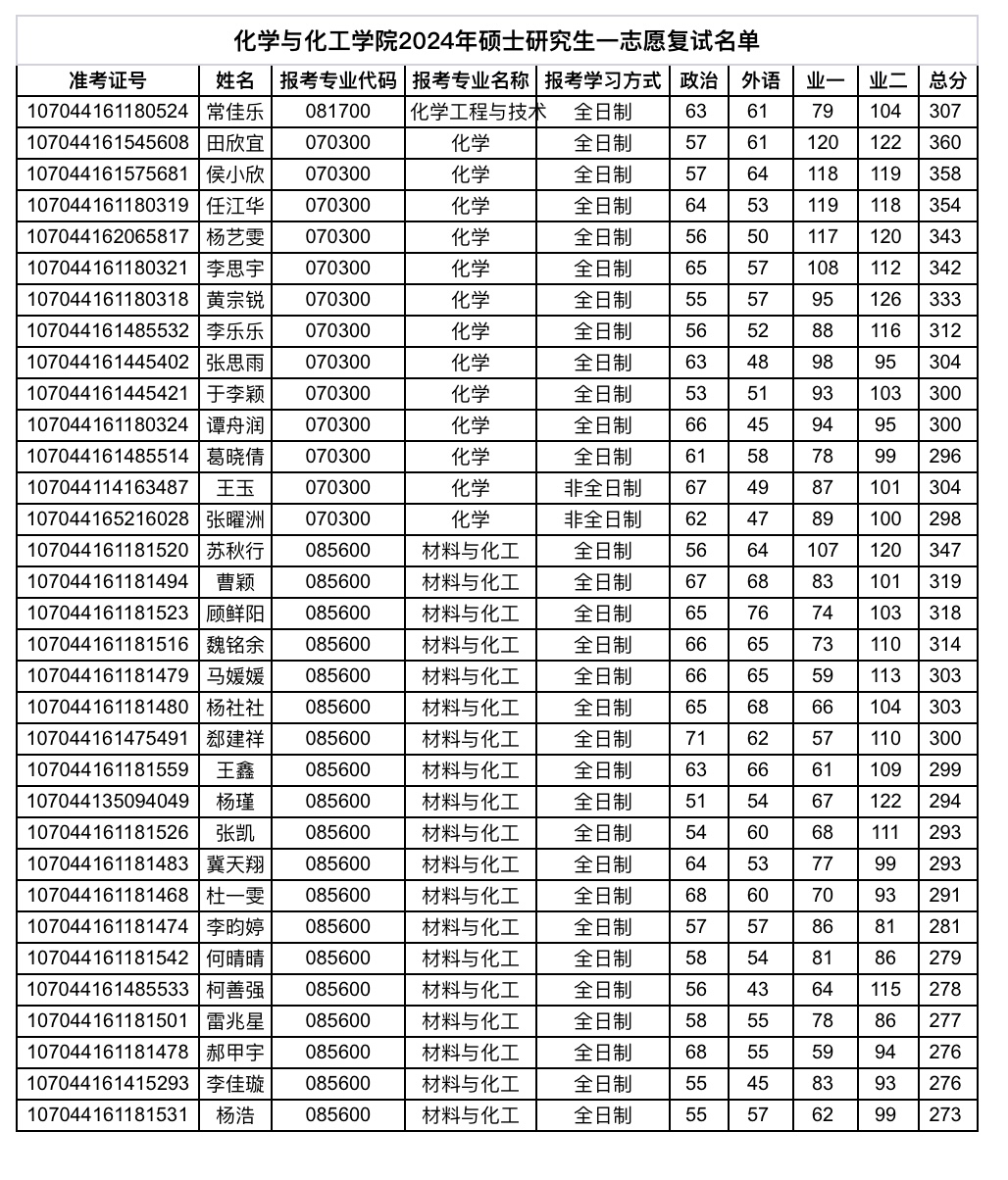 2024年硕士研究生一志愿复试名单
