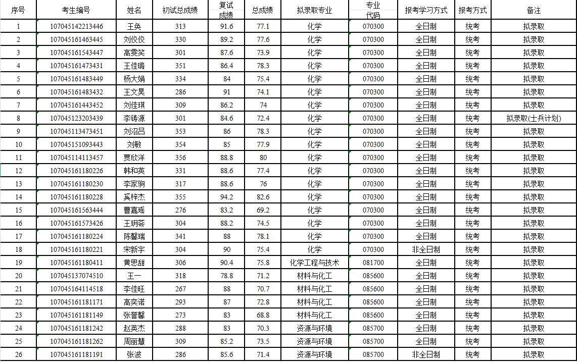 一志愿拟录取结果及复试成绩公示