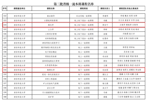 近日,陕西省教育厅公布第三批省级一流本科课程认定结果,公司2门课程入选。其中,周安宁教授主持的《煤化学》获批线上线下混合式一流课程,刘向荣教授主持的《物理化学》获批线下一流课程。此次2门课程的入选,是公司本科课程建设的又一重要成果。